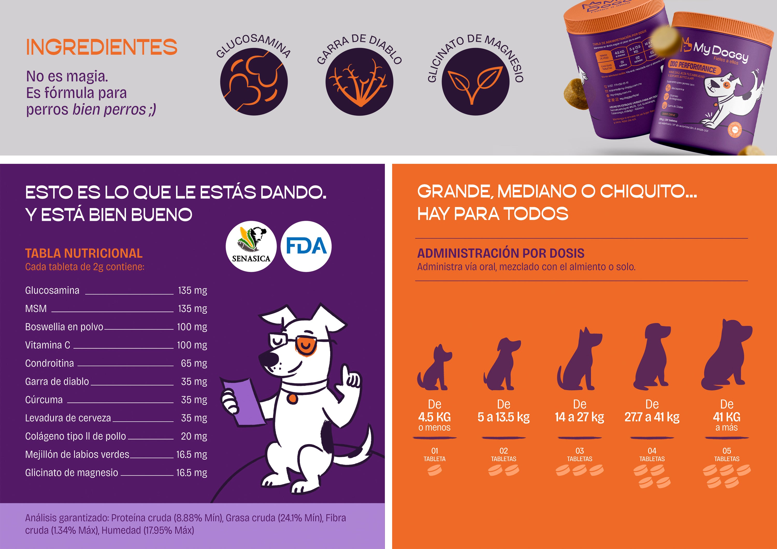 Si, Dog Performance de My Doggy es un suplemento que cuenta con aprobación de SENASICA, en el envase aparece el N° de autorización.